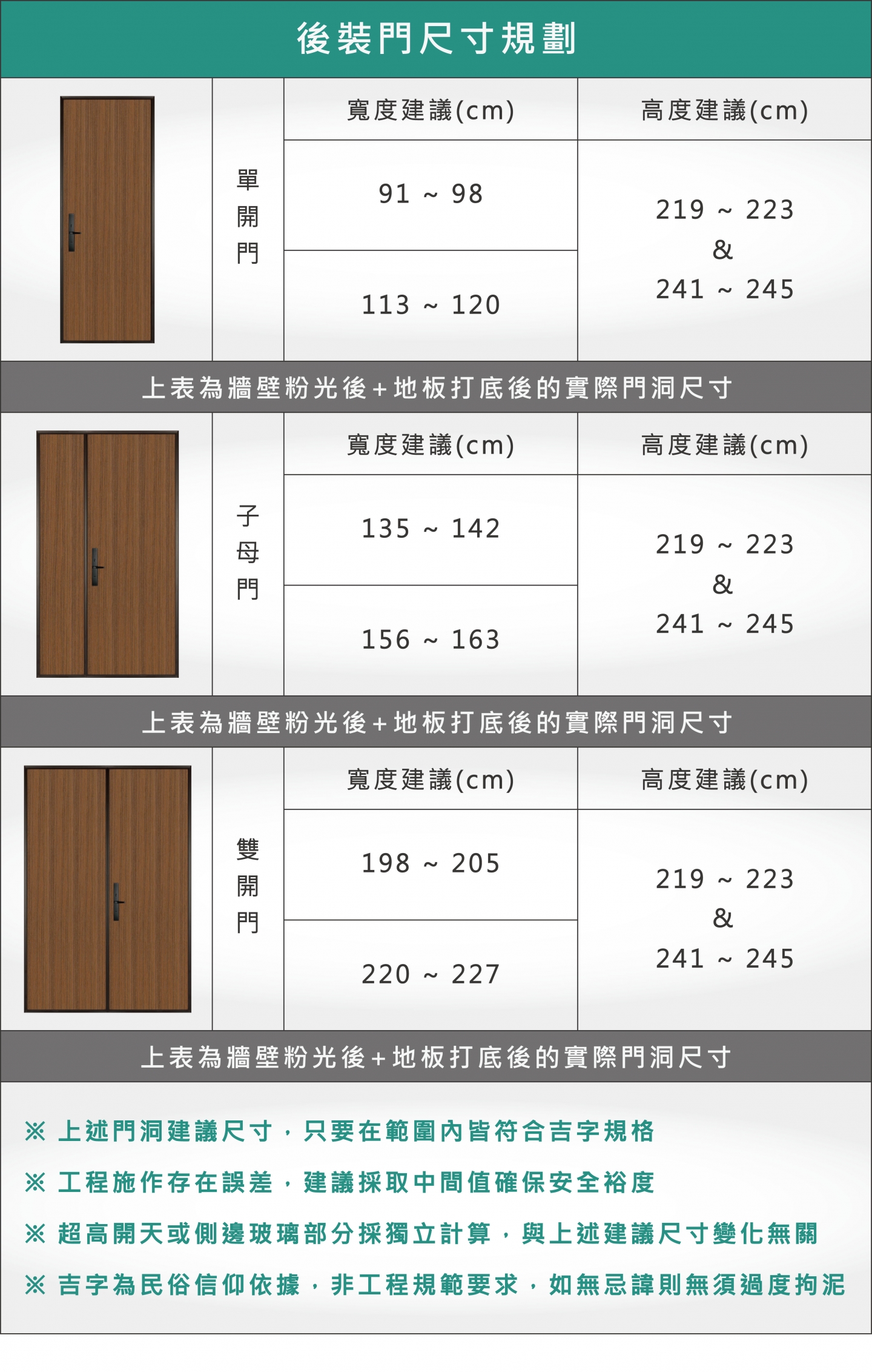 | 請問後裝門要如何規劃門洞尺寸呢? |